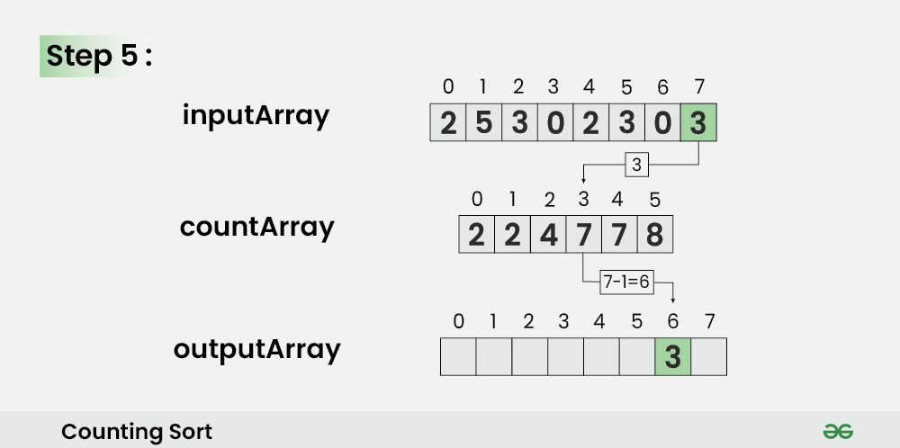 outputArray[countArray[inputArray[5]]-1] = inputArray[5]