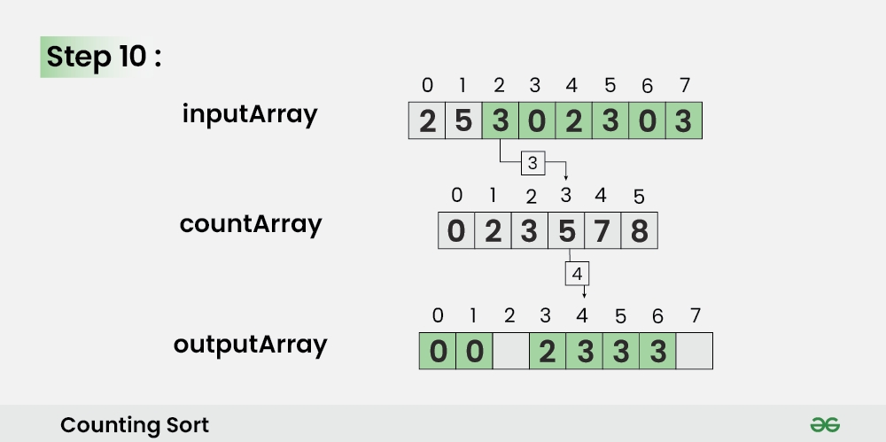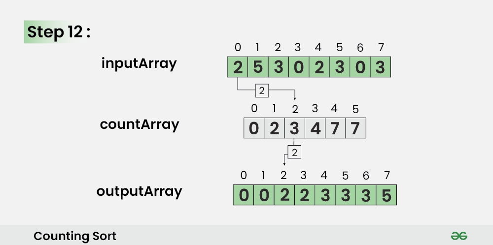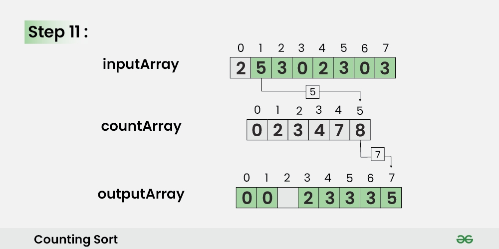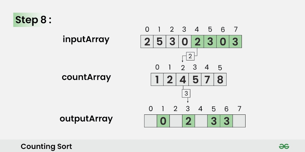 , outputArrayni yangilang. Shuningdek,countArray[inputArray[2]] = countArray[inputArray[2]]--